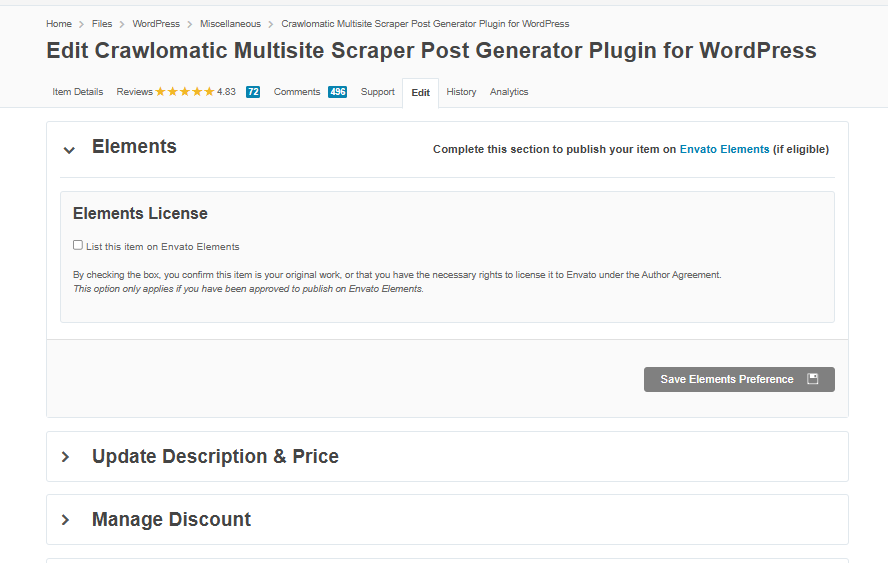 I don’t publish on Envato Elements so I don’t see this in dashboard.
