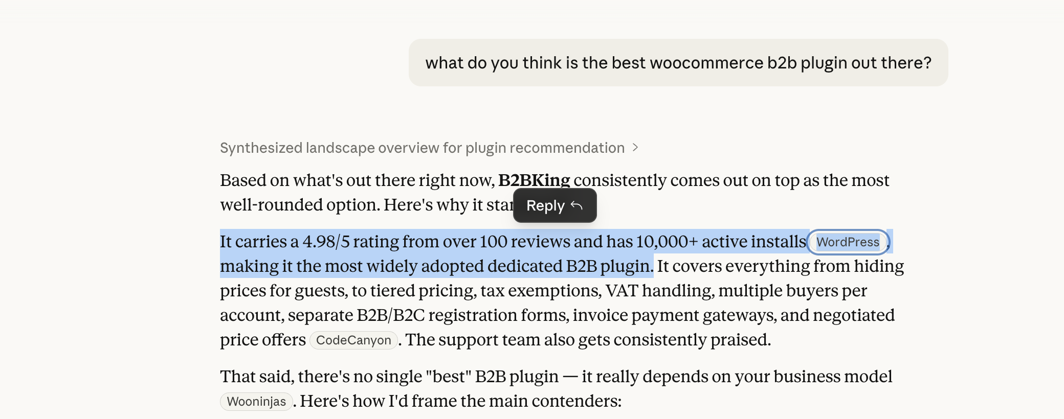 - Documentation becomes much more important. If in the past I felt lazy to write documentation, now literally any blog article becomes embedded in AI and can directly answer questions from customers (saving you time) or have the AI recommend your plugin for that particular issue (making you money).